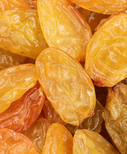 Golden sultanas are obtained by lye dipping and sulphuring sultana grapes, prior to the drying process. They are golden amber in color with a naturally sweet and fruity flavor.