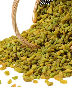 Green Raisins produced from Seedless sulphuring sultana grape variety. They are Green in color with a naturally sweet and fruity flavor.